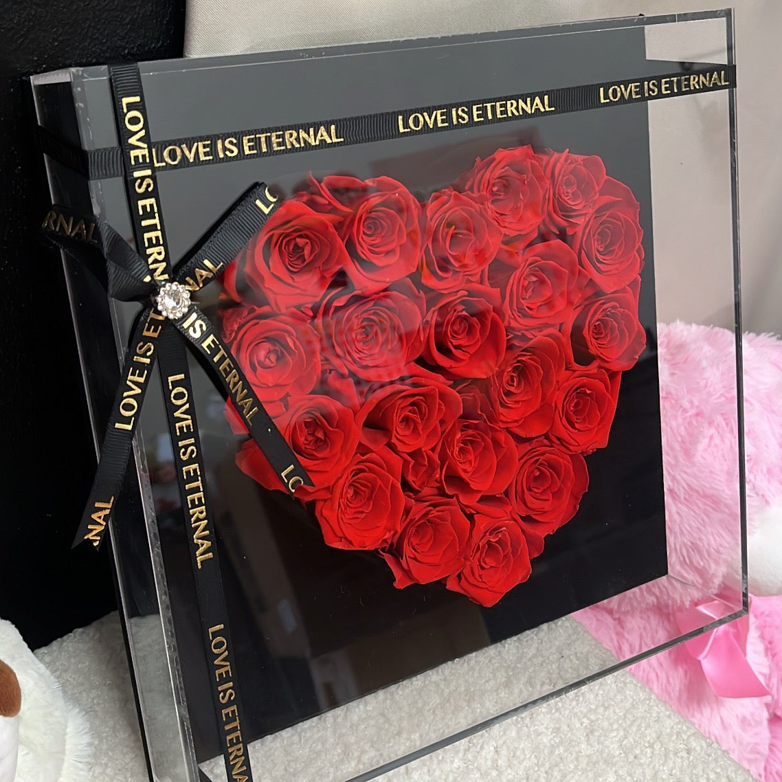 Ajoutez une touche d’éternité et de romance avec ces pièces uniques qui captivent le cœur et l’esprit. Chaque rose est soigneusement préservée pour capturer sa beauté éternelle, disposée avec délicatesse dans un cadre pour former un cœur élégant, parfait pour offrir et servir de décoration.